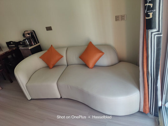 由于台风缘故,琼州海峡轮渡停航了几天,所以运输时间也多等了几天。送到家后,看了实物,挺好的,很满意。坐感软硬适中,皮质手感也可以,颜色也是我喜欢的颜色,跟屋里家具很协调。就是侧面有一点小瑕疵,也圆满解决了,谢谢樱桃小丸子!