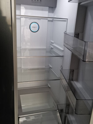 收到货了哦!很快到货当天就到货,冰箱外观很大气,颜色很喜欢,内部空间很大,放置一天通电使用,制冷很快,声音很小,效果极佳,值得购买,很满意,冰箱高档大气上档次,一级省电的,空间容量够大,能放好多东西,已经用上几天了!收到货就把隔层清洗干净,静放几个钟后就插电用上了!很满意,家里厨房位置刚刚好,也超静音