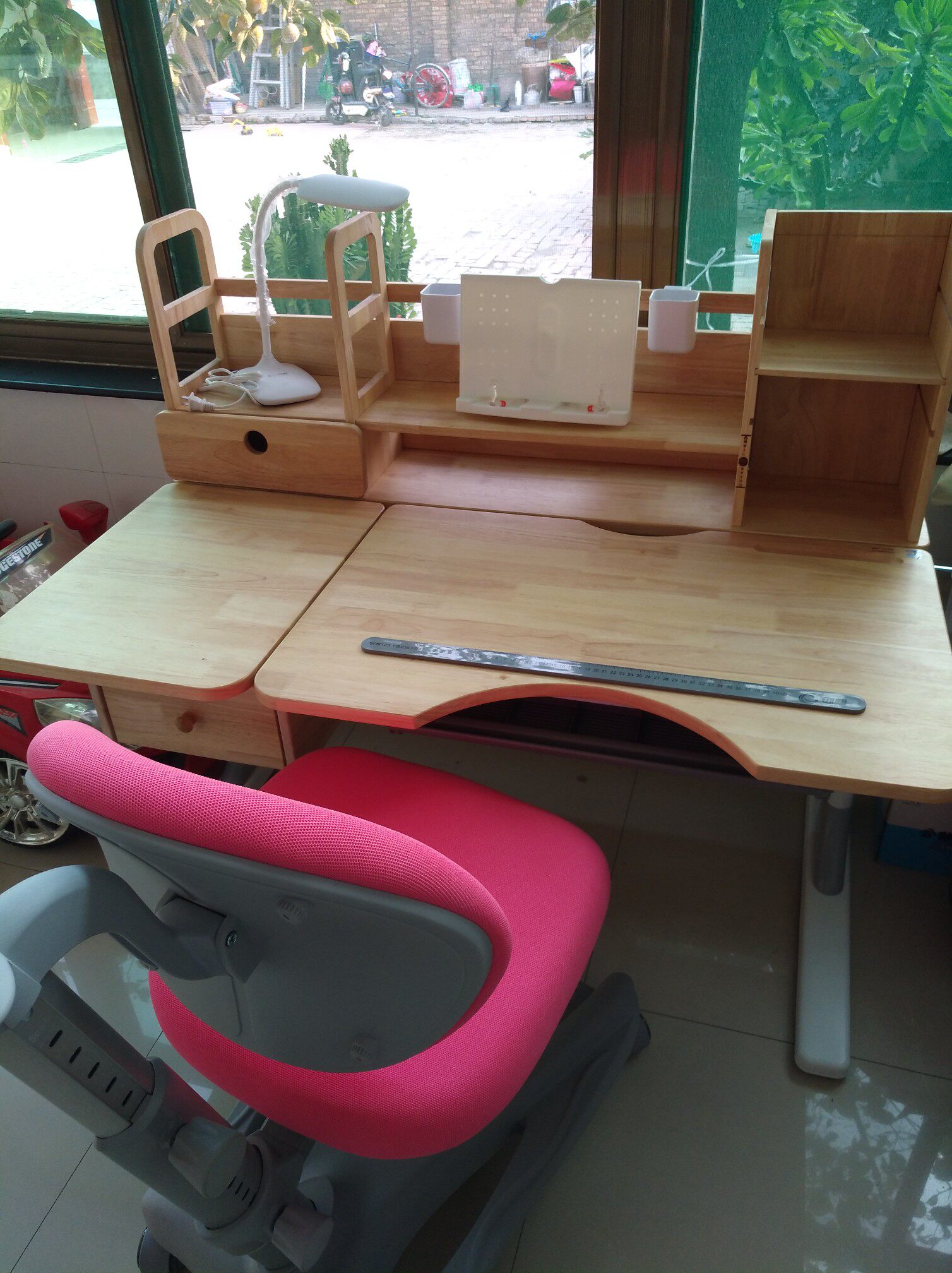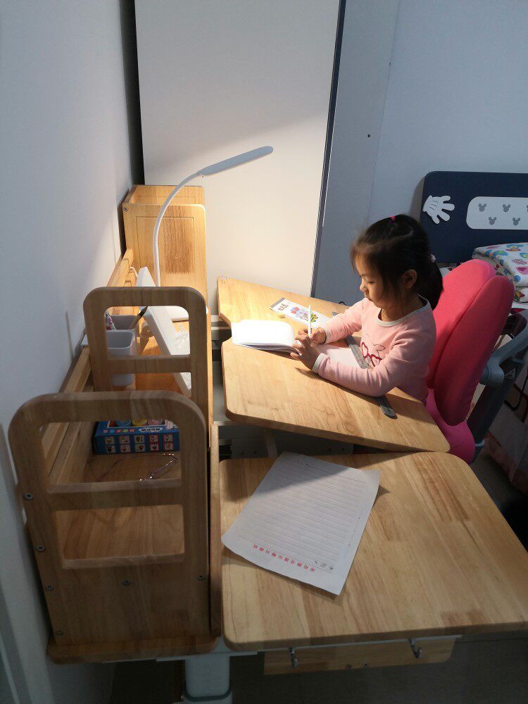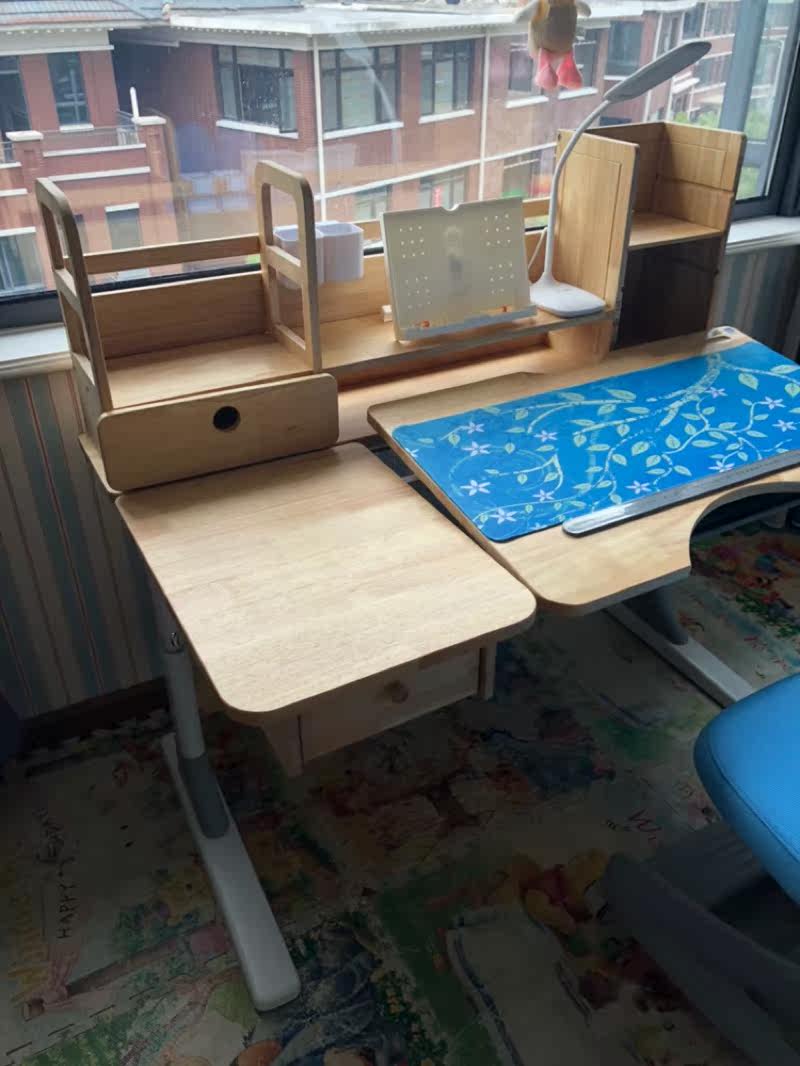 还不错,整体满意,自己和媳妇安装了半天,孩子很喜欢,有点味道通风几天应该就好了,希望陪伴孩子快乐成长。,很好安装,整体工艺质量还是不错的。物流很快。也可考虑请卖家安装,确实挺费体力的,出了一头汗,是实木的,师傅装了两个多小时。选了好几家,实体店也看了好多,这个价位还是比较值的,孩子还在上幼儿园,偶尔坐那里看看画册画画,用了两个星期,除了原木的味道比较重其他还都挺满意,桌子也稳送的小台灯质感也不错,桌子感觉能用到上大学