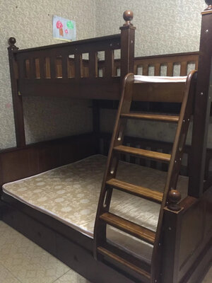 2.这床很好,全实木,质量杠杠滴,真的很值得购买,服务也很好,安装师傅连晚给我装好了??,儿子很喜欢,床质量很好,安装的师傅也说这个床用料很足,这个床的用料是全实木,很结实,上层护栏也很安全,关键是价钱还比实体店便宜