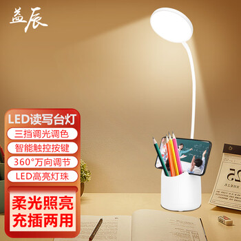 口碑实情分析益辰TD-33台灯值得买吗?益辰TD-33评价如何?给孩子买的。学习环境很重要,一盏好的台灯也非常重要。灯光效果:亮度分级调节,明亮无频闪,很好外观款式:中规中矩,灯头可以旋转调节,方向自主,方便操作控制:简单易学,还有时长提醒,不错的功能材质工艺:材质很舒服,底座和灯杆灯头安装方便,点赞特色功能:人体感应和无线充电功能不错,特别适合白天没有时间充电,又不愿意总带着充电线的人。如果睡觉前看一会儿手机,又不愿意起身关灯,人体感应就很实用了 光线亮度:光线分电脑和看书两种,都很柔和,调节亮度自己选择合适的,很实用也很喜欢 材质做工:感觉很高级,毕竟价格在那 设计风格:设计风格也很喜欢,大人孩子都能用