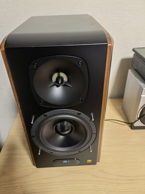 3.音响很有质感,份量很足,快递小哥也挺给力,送到家门口。,是正品,包装完好无损,两层漫步者的纸盒,还有个产品的包装内箱,这个店的产品值得信赖,就就像相信国美,**,京东一样,我也是第一次在这个店体验,感觉还不错,有机会,一定会去光顾的,一直用漫步者,前一台音箱用很多年了,大概有10年以上了,直到前几天才有一边箱子坏了,于是打算换新。在惠威和漫步者之间纠结了好一阵,终于决定换了这台性价比更高的音箱。万元下音响就听个响,根据自己喜欢吧,体验肯定是有提升的。