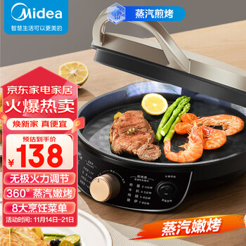 非常实用的一款电饼称,厚度有个3cm左右,薄饼厚饼都没问题,还可以煎饺,带了个蒸架,偶尔热点馒头也不错,加热很快,大小适合三口之家。售后服务也很好。