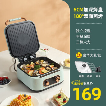 电饼铛不粘锅,受热均匀,两面同时加热,清洁方便第一次买这种电饼铛,真的挺不错,煎鸡蛋煎饼都很快,方便实用,双面预热,还会回购外观材质:外观颜色大气,耐脏实用。电饼铛锅很好用的,以前煤气灶上煎饼老胡了,现在有了这个太好用了,要买的放心购买哦