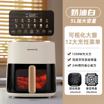 空气炸锅颜值非常高,放在厨房里赏心悦目,简直爱上做饭了。4L容量两个人用刚刚好,顶部还有常用的食物烹饪温度和时间,使用起来很方便,不用再擦手去看手机食谱。家里很多九阳的电器,质量也有保障,下次还会再买